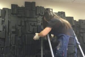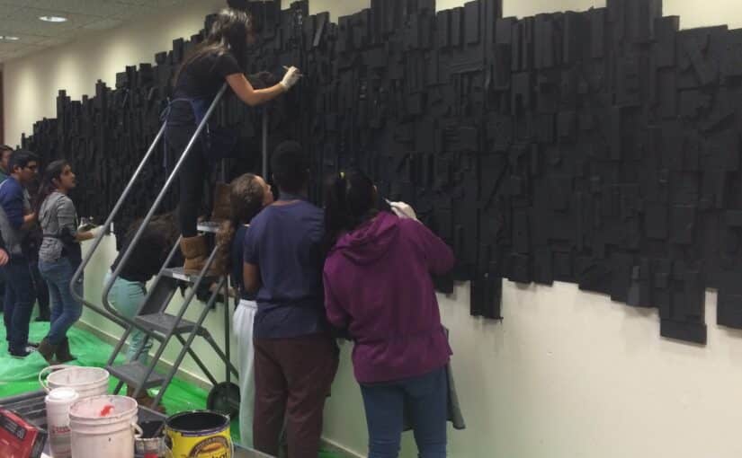 “Art like this needs to be kept up,” said Brock. “The original piece of art, inspired by the work of Louise Nevilson, was a deep red but was painted black about 15 years ago.”