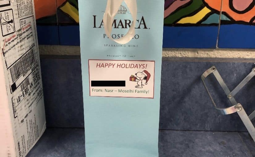Sources tell Talk of the Sound Moselhi gave her child’s teachers at Albert Leonard Middle School bottles of Prosecco, an Italian sparkling wine that has become increasingly popular for its reputation of getting drinkers drink faster or “Prosecco drunk”. One bottle remains, a month later, in the school’s main office (pictured above).