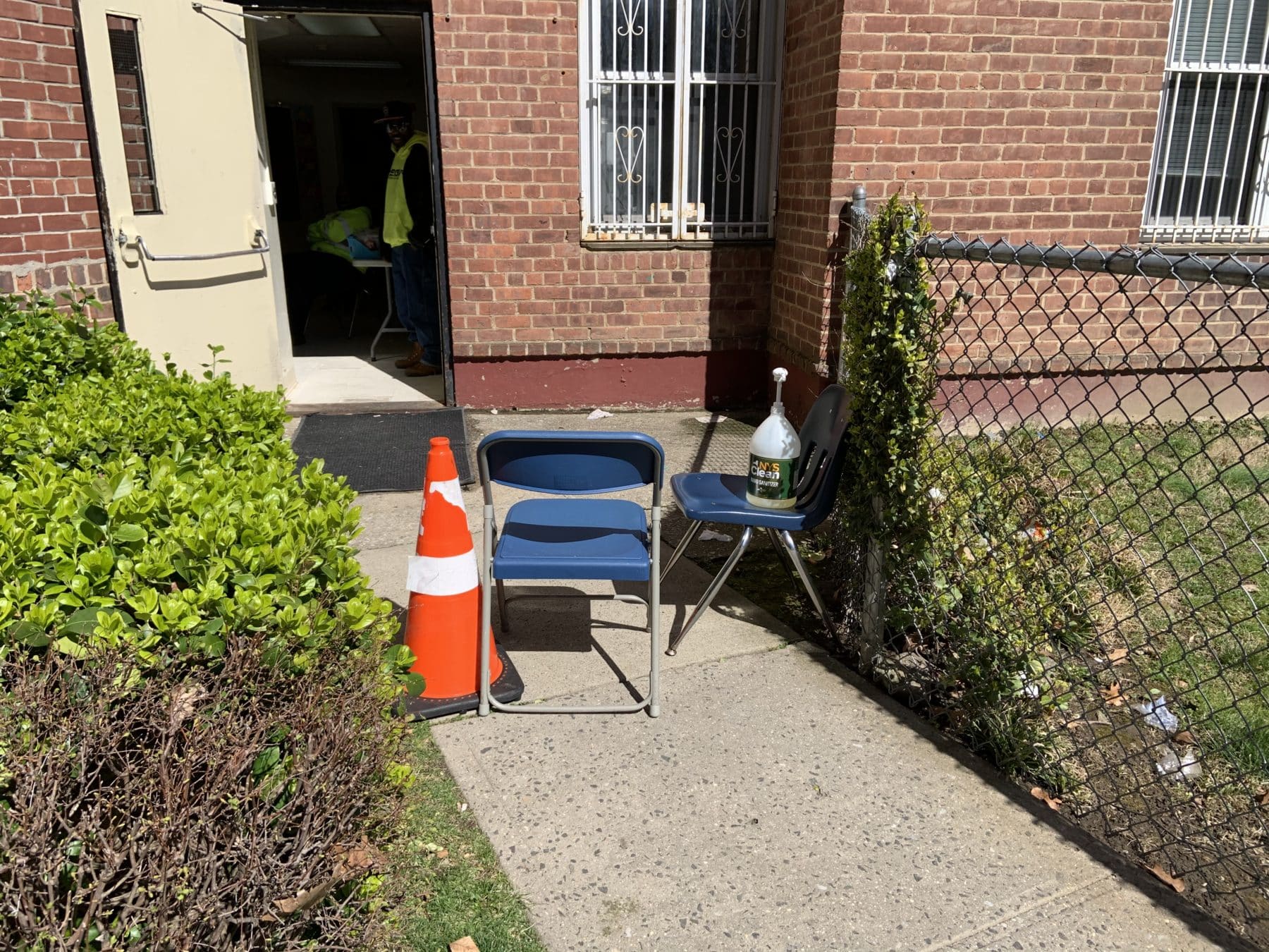 345 Main was significantly improved. Workers who are compliant with being screened by school nurses, are wearing surgical masks. The best improvement is the door is now blocked by two tables. The food parcel exchanges occur on two tables set up to create 6 feet of distance between worker and client. The workers were actually tossing the bags across the table. There was no hand sanitizer on the table. There are cones but no plastic ribbons, floor tape or bi-lingual signage on social distancing while on line and to stay away if symptomatic. CSDNR security and nurses were not on site during our visit. The clients are compliant with the new set up and requirements