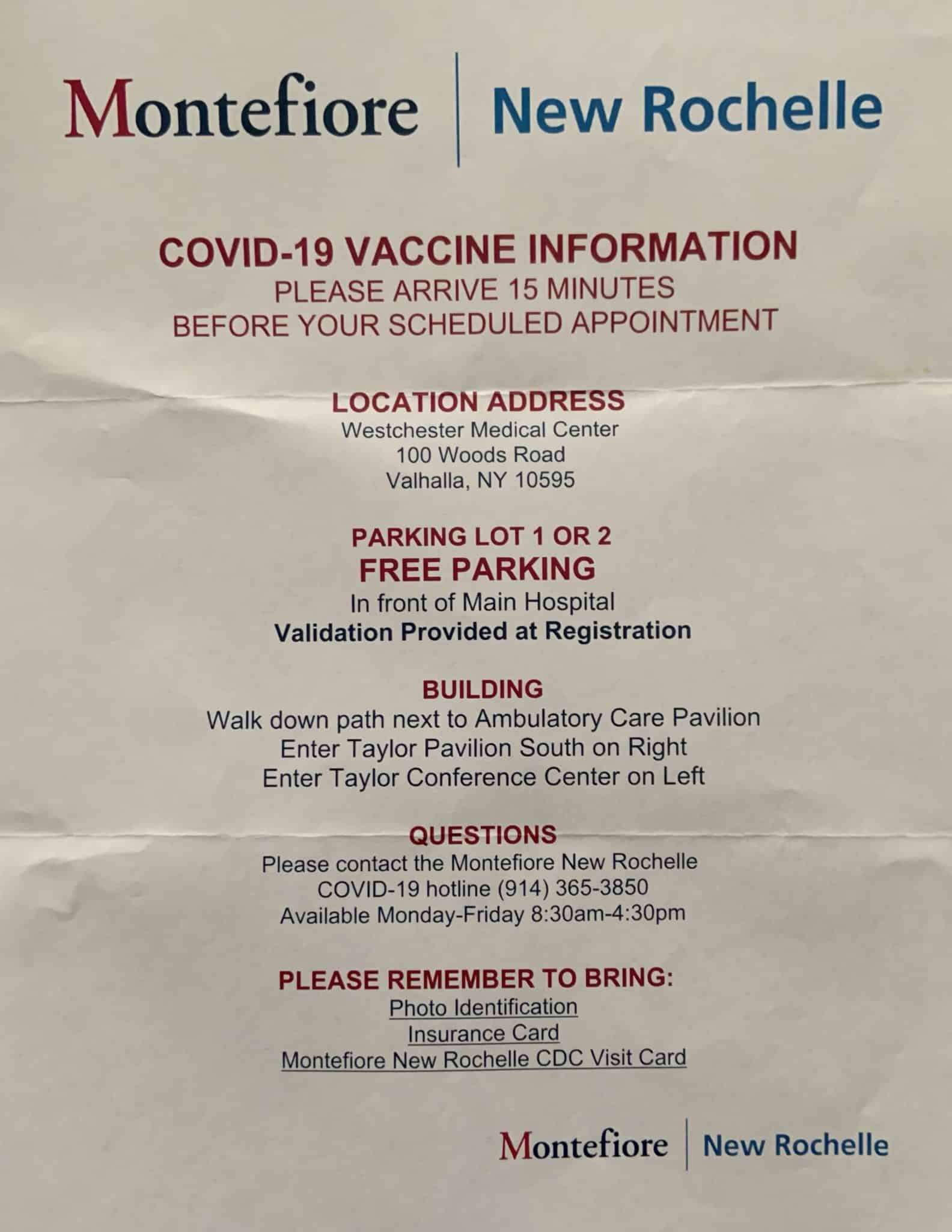 NEW ROCHELLE, NY — New Rochelle City and School District Employees fortunate enough to have received a first dose of the Moderna COVID-19 earlier this month are now being told to report to the Westchester County Medical Center to receive their second dose the first week of February.