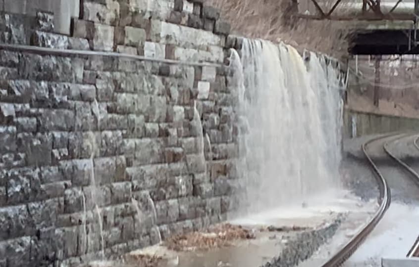 NRPD and NRFD on scene. Suez Water on the way. Waterfall onto train tracks.