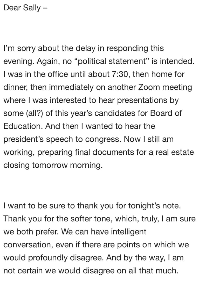 In the days after the April 10 verbal altercation in Eastchester, Lacher mostly stopped responding to Lombardo. Instead, Lacher engaged Lombardo’s mother via email regarding a plexiglas partition Lombardo had obtained as a gift for Lacher from her mother for Lacher’s office at 270 North Avenue. Lacher took the partition to the New Rochelle Police Station on April 12.