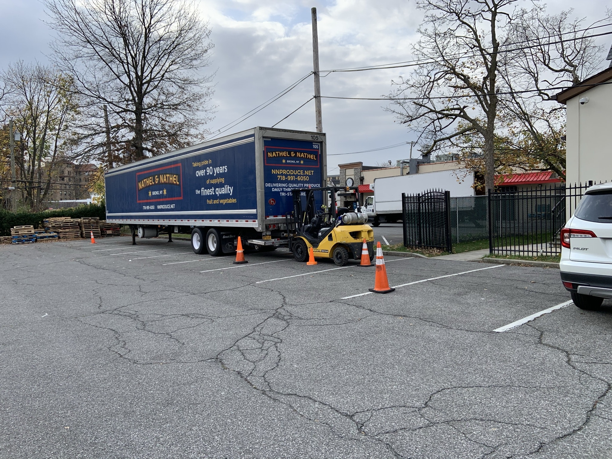 The City already ceded a dozen parking spaces to the church last October by allowing a refrigerated enclosed-cargo space from an 18-wheeler to block the spaces 24 hours a day. Initially, City officials said the truck and pallets would be in the lot until Christmas for a holiday food give away. That was 9 months ago. The parking spaces are still blocked.