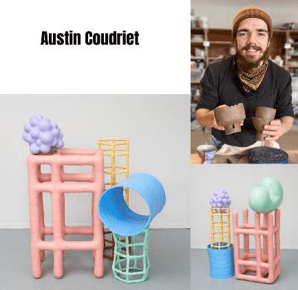 Austin Coudriet is a ceramic artist currently working and living in Westchester, NY. He holds a BFA from the University of Nebraska-Lincoln. His work highlights the interaction between architecture and amorphous forms with some abstract sculptures being life-size. Austin is a second year resident artist at Clay Art Center.