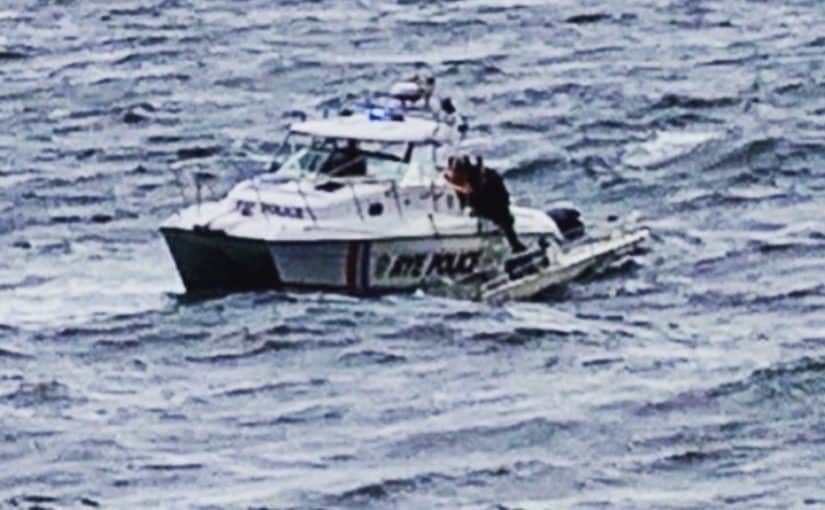 RYE, NY —Rye Police rescued a person from a partially submerged vessel on Saturday afternoon.