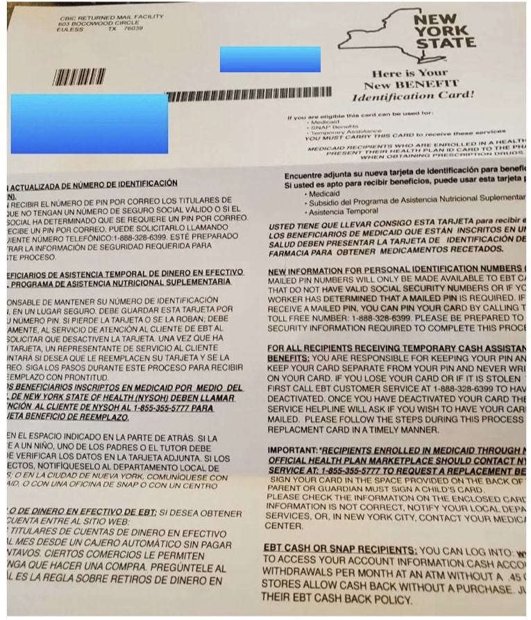 OTDA could have prepared the public and obviously should have sent a “cover letter” with the EBT Cards.