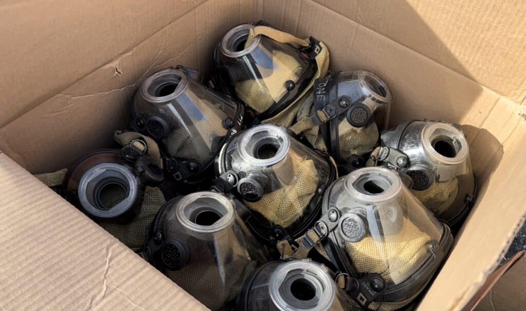 The donated equipment includes several sets of used bunker gear, including 30 coats, 48 pairs of pants, 30 pairs of boots, as well as 80 Nomex firefighting hoods and 100 SCBA air-pack masks.