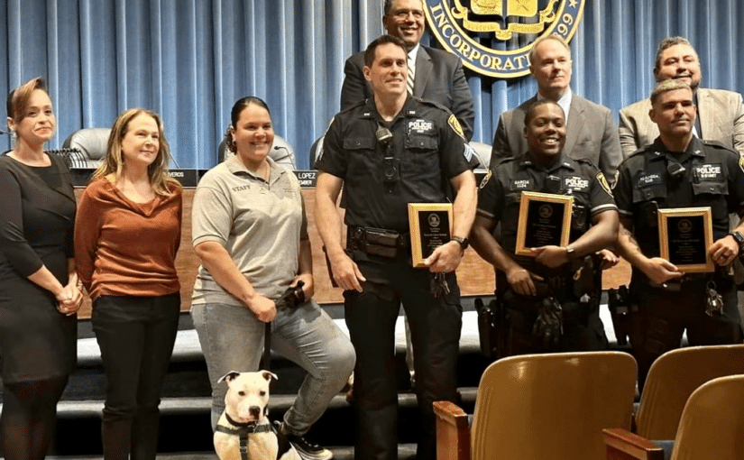 NEW ROCHELLE, NY (May 19, 2023) — The City of New Rochelle’s Office of Diversity and Inclusion today honored New Rochelle Police Sergeant Jason Redner, PO Joshua Garcia, PO Ricardo Almeida, PO John Care and PO Deivy Martinez for rescuing a dog trapped in a sewer. The incident occurred on April 8, 2023.