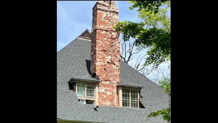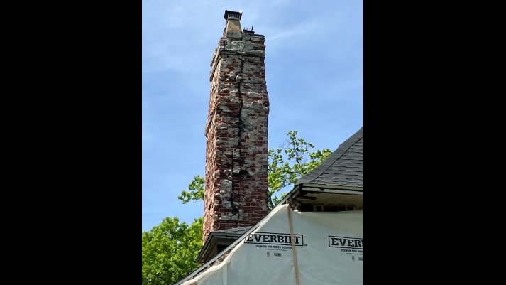 The chimneys look like they could crumble at any moment and are due for an inspection by the City in case they are unstable. Small children playing next door just a few feet away could be at risk. Not to mention their house close by.