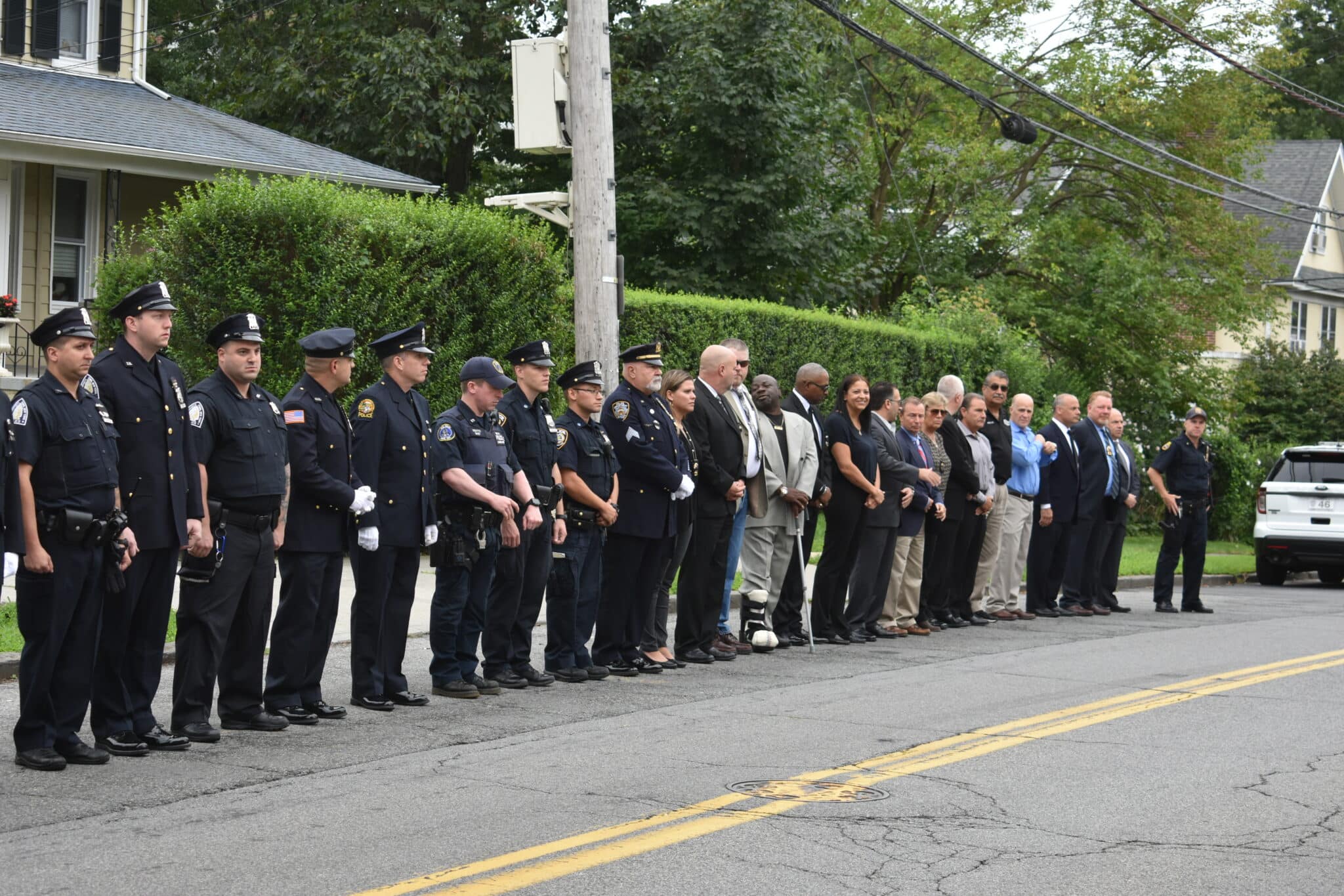 The ceremony was attended by city and police department officials, O’Connor-Funigiello’s family, current and retired NRPD members, and marine units from the United States Coast Guard Station Kings Point, FDNY, Westchester County, Village of Mamaroneck, City of Rye, and Town of North Hempstead.