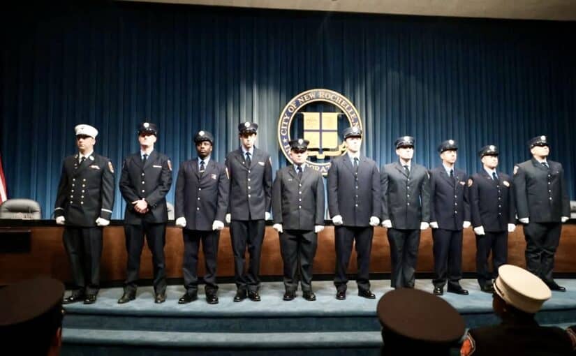 NEW ROCHELLE, NY (October 17, 2025) — The New Rochelle Fire Department recently celebrated the promotion of several firefighters to new ranks.