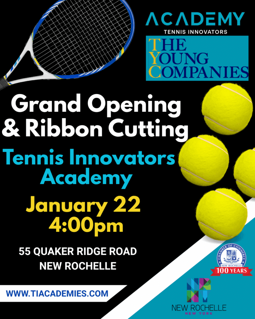 NEW ROCHELLE, N.Y. (January 17, 2026) — The New Rochelle Chamber of Commerce will host a ribbon-cutting ceremony Thursday to celebrate the grand opening of Tennis Innovators Academy at 55 Quaker Ridge Road.