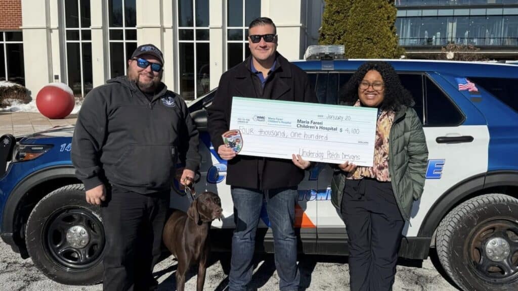 WHITE PLAINS, NY (January 20, 2026) — The Westchester County Police Department delivered a $4,100 donation to Maria Fareri Children’s Hospital generated from sales of a special Operation Blue Santa commemorative patch.