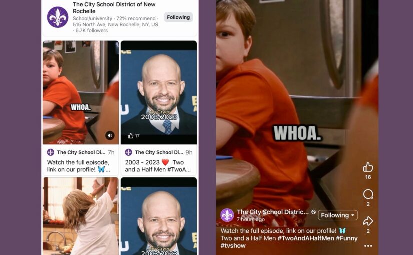 NEW ROCHELLE, NY (April 14, 2026) — The City School District of New Rochelle posted video clips from the television sitcom Two and a Half Men on its official social media account, prompting questions about oversight of the district’s online communications.